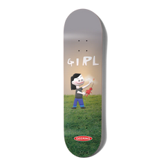 Girl Skateboards Breana Geering pro model, available in 8" and 8.25". Cartoon Breezy lighting a Girl OG firework. Shape G045 Width:8 Length:31.5 Wheelbase:14 Nose:6.75 Tail:6.55 7 Ply maple Round nose and tail, straight rail, Shorter version of the G008 Part of the regrowth programme planting 2 trees for each harvested